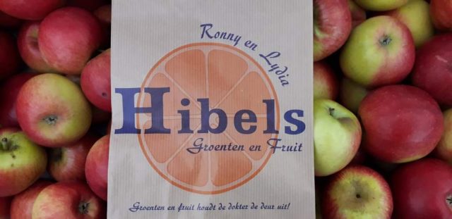R Hibels Groenten en Fruithandel staat met verse groenten fruit op de Zeeuws-Vlaamse Markten,